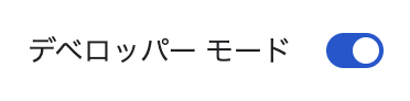 拡張機能管理画面の右上にある「デベロッパーモード」 をオンにします。